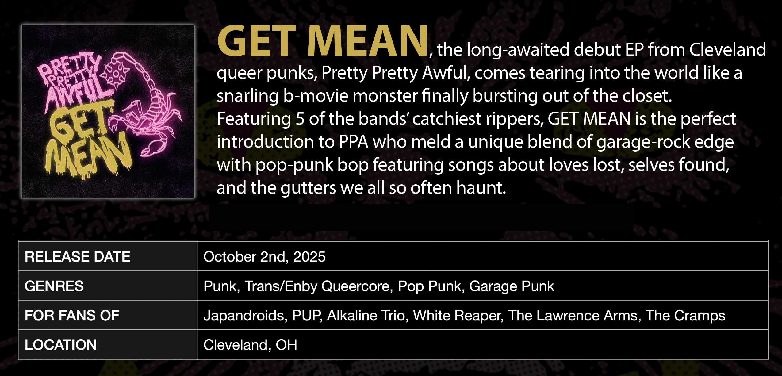 BANDCAMP: https://prettyprettyawful.bandcamp.com/album/get-mean